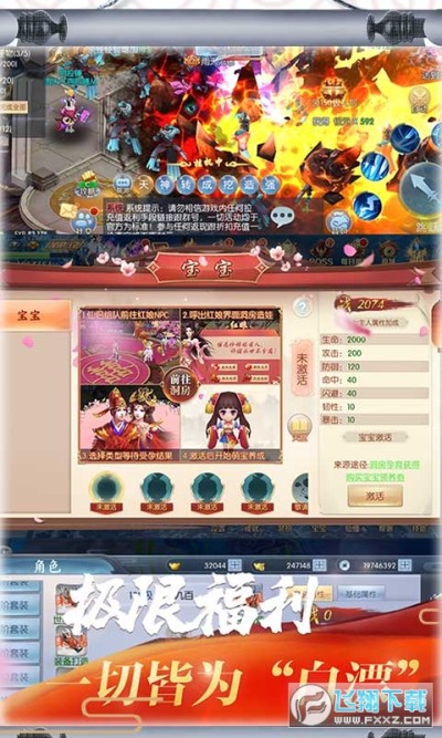 3.更有天阶骑宠,上古魔刃,神秘仙童陪你一起闯荡热血的江湖。修复传承古宝,传承强力武学,体验更加热血的战斗。