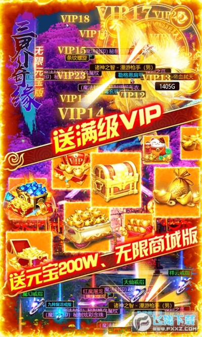 2、登录就送满VIP,登录就送200W元宝,铜币1亿。每天免费领取50W元宝。