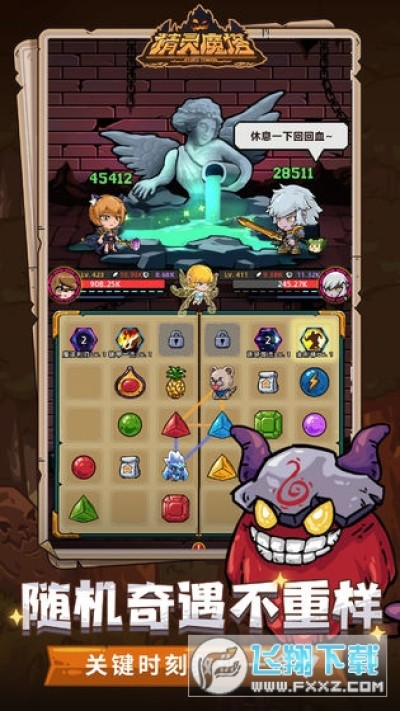 向着魔塔进击你可以随心所欲选择房间,进入未知下一层!或是偶遇迷路勇者请求他加入作战队伍;或是在能量石采集资源提高战斗力;亦或是在命运转盘下孤掷一注,结局全凭天意!还有等着你的塔灵、附魔、药水巫婆、技能将军......
