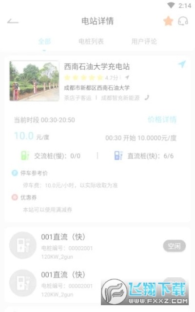 1、在充电地图中点击电站弹出框可以进入电站详情。