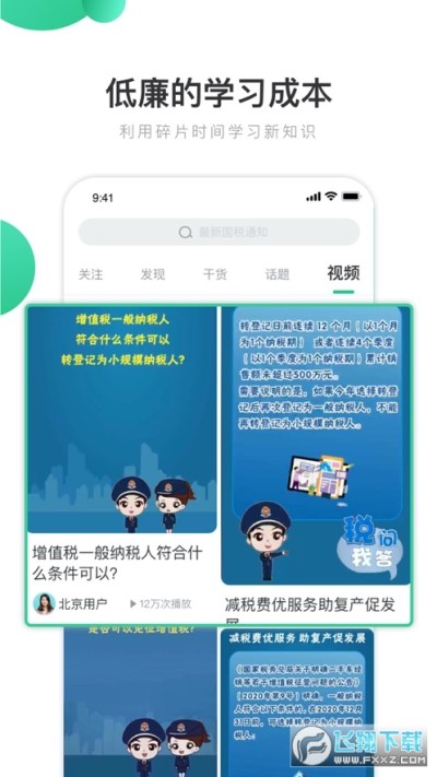 4-10分钟选视频,碎片化学习时间专业主题内容,系统化知识技能学习,打造一个全新的财税短视频平台