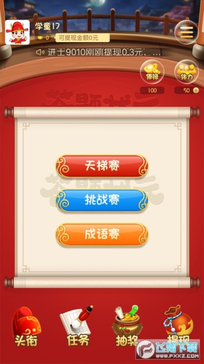 答题状元app是一款手机成语答题赚钱的手机软件,这款软件上有超多的关卡可以去体验,过关就能获得红包奖励,同时答题状元翻倍奖金模式赚的更多哦,快来下载试试吧!