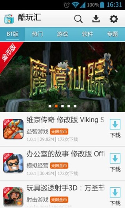酷玩汇,一个网罗至in游戏的专业平台,今起迎来重大更新。全新升级的游戏金币专区海量提供时下热门游戏的无限金币版本,让你轻松畅玩热门游戏,下一个酷玩达人就是你。另外原有优质内容重装升级,酷玩汇资深编辑将会一如既往的为您提供精品应用,特色内容专区紧跟时代热点,并且客户端更加简洁,让你急速享受一站式下载的体验。