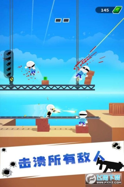 特工47是一款非常好玩的射击类闯关游戏。游戏设计了PVP和PVE两种不同的模式。在PVE模式下,玩家需要扮演一名光头特工在关卡中执行秘密任务,你要使用能够回弹的子弹来消灭关卡中所有的敌人,你的子弹数量是有限的,因此你要充分利用好关卡中的地理环境来射出一个完美的子弹轨迹。在PVP模式中,玩家将于来自全球的玩家进行对战,看看谁才是最好的特工!