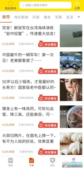 1、新人下载登录送0.55元,文章单价0.2元,涨分快,上量猛,转发新闻就能赚现金,秒提现。