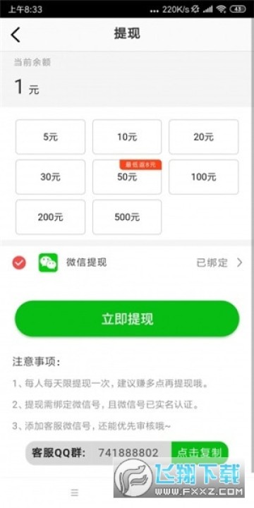 首次5元提现,以后是10元提现,支持微信/支付宝提现,秒到账。
