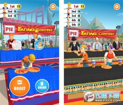 我吃的贼快游戏会让你去参加一场大胃王比赛,当中会有很多选手在一起进行比拼,而你想要获胜那么就要疯狂的去吃东西,在玩的时候还是比较考验自身的手速的,有时候被食物噎住那么就要让他喝水,在面对各种情况的时候要做好应对的准备,不然就容易慢下来。