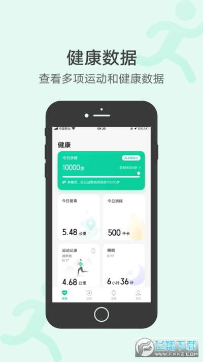 2)通过手机记录户外跑、室内跑、骑行数据。