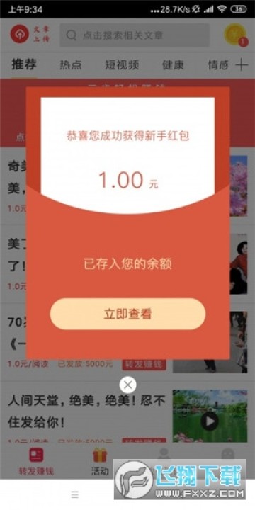 1、屠龙赚app内文章资讯多种多样,只需将文章分享到微信,越多人看到、点击量越多,赚的也就会越多