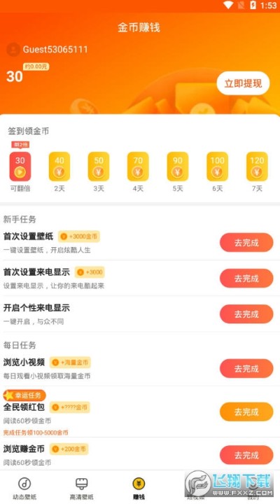 下载芒果桌面APP,按提示设置默认壁纸或者铃声,获得0.3元