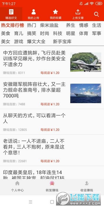 满堂富转发APP是一款优质的分享文章赚钱的平台,该款软件网罗海量资讯内容,新闻、搞笑、智力、娱乐等资讯应有尽有,简直就是专门为你定制,而且每天任务多多,拥有刷新闻头条赚,看搞笑图片赚,每日签到赚等任务,让你获取资讯的同时,也收获一份乐趣,喜欢就来下载吧!