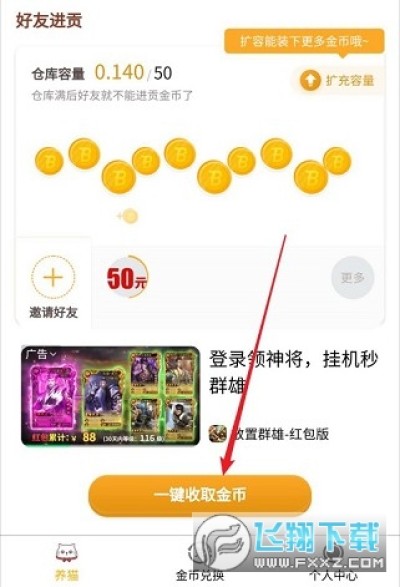 在首页下面有一个『好友进贡』功能,记得来收取金币,这里面产币挺快的。