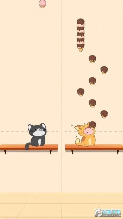 玩家可以在猫咪二重奏游戏中开启十分有趣的猫咪类玩法,可以跟朋友一起在手机上进行对抗,不断的接住上面掉落的物品,简单的指尖操作,跟着节奏,锻炼你的手速和反应能力。