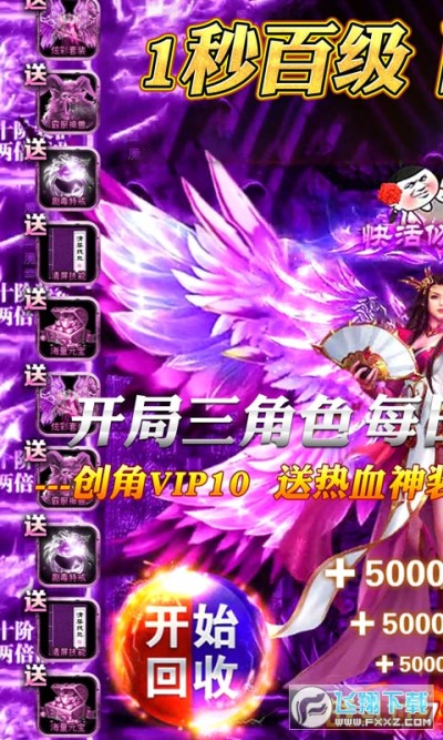 3、特色福利三:充值比例1:5000,首充十倍返利、热血神剑、九霄神女、麻痹、护身戒指任意送!
