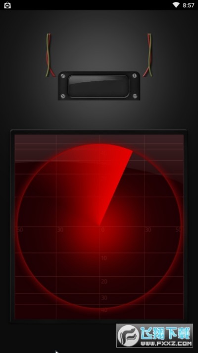 金属探测器:移动设备周围的金属物品,声音和振动的时间间隔是速度较规范的地位和屏幕颜色更改为红色