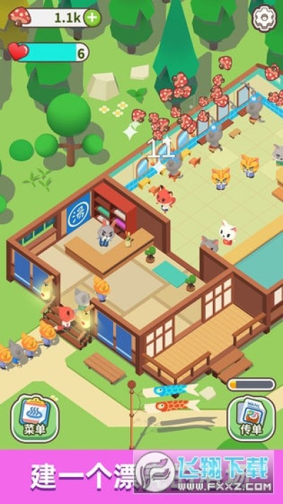 温泉、木屋、森林。卡通制作,贴合森林元素,游戏角色都是可爱的小动物,让人沉浸其中。