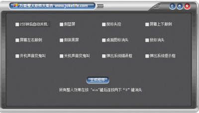 有2分钟后自动关机、假蓝屏、鼠标失控、屏幕上下颠倒、屏幕左右颠倒、假装黑屏、桌面图标消失等等多个软件。