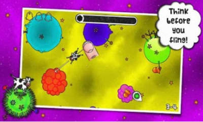 需要小动一点脑筋的太空物理游戏,就像《愤怒的小鸟》一样,玩家用手指控制牛飞行的方向和发射力度,将它发射出去,飞往绿色的草地星,路上得多捡一些铃铛以获取完美过关分数。牛在太空飞行时,其他星球的引力会干扰它的飞行线路,小心不要撞上!当需要引导牛的飞行方向时,可以按住屏幕制造黑洞吸引它哦~只是别让它直接掉进黑洞里了!