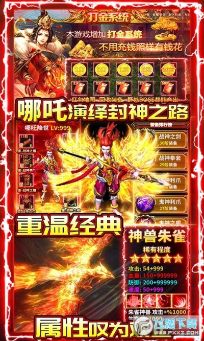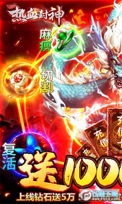 【热血封神】送超过1000元充值,从此封神路上不再扑朔迷离,上线送5万钻石,500万元宝,完美再现热血青春体验,激战boss,百倍爆率掉落充值红包,等级奖励升级plus,200~800等级礼包赠送红包充值卡(增加钻石和VIP经验),免费贵族全靠打!