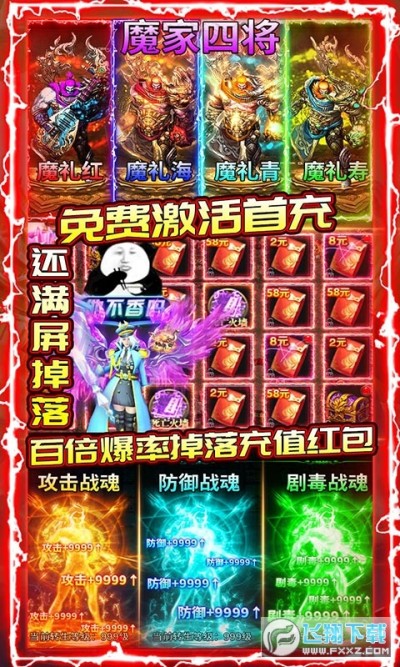 3、上线送5万钻石,500万元宝,完美再现热血青春体验,驱魔满级完虐炼狱boss