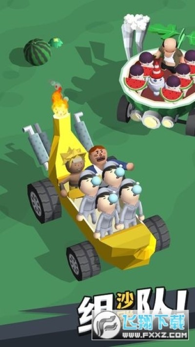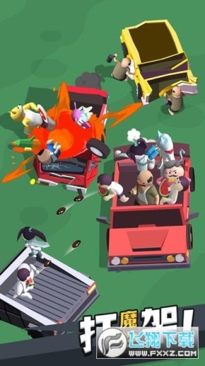 区别于市面上所有的开车打架游戏,这款游戏的特点是魔性沙雕,有20多辆奇怪的车可用,在广场上你能捡到吃瓜喷众