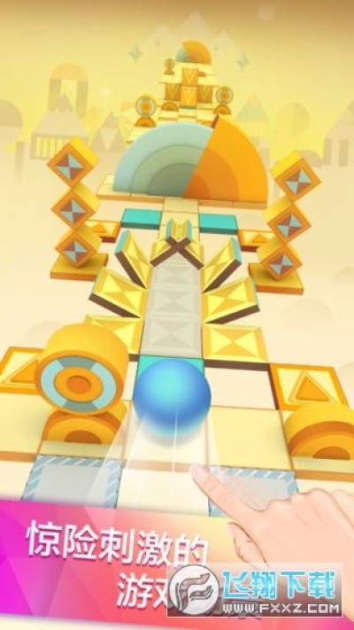 2、玩家只需要通过按住屏幕滑动,控制一个小球闯入一个充满障碍和奇异地形的天空之城,不过若稍有不慎碰上障碍物或是从平台坠落,小球就会完全粉碎,游戏就会结束。