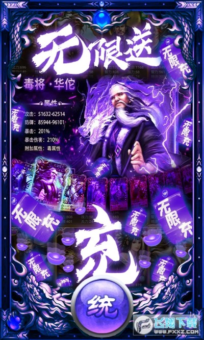 ★无限送充抽说明:①通关1-8开启在线奖励领取功能,持续领取30分钟可领完全部档位,内含大量高级招募券、超级招募券、充值卡、等大量道具。领完每天免费高级连抽,必得橙将。橙将可升红,轻松游戏不花钱!
