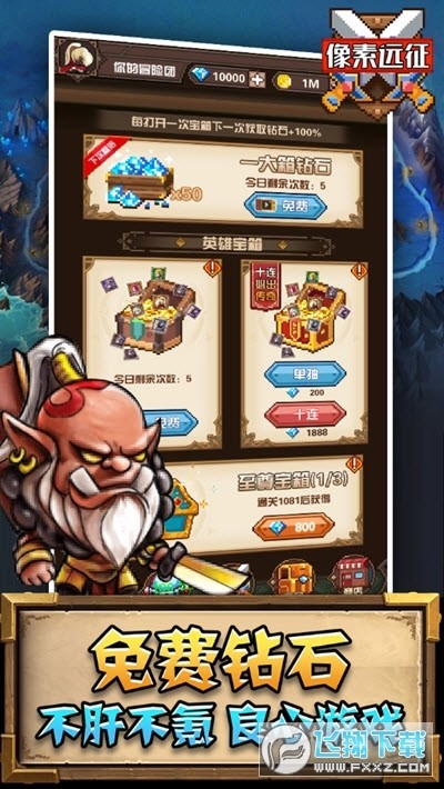 像素远征好玩的放置策略对抗手游,通过合理的英雄搭配,阵容阵型以及何时的技能释放时机进行闯关战斗,完整的装备系统,英雄数值等等设计非常合理,下载像素远征就能开始指尖游戏啦!