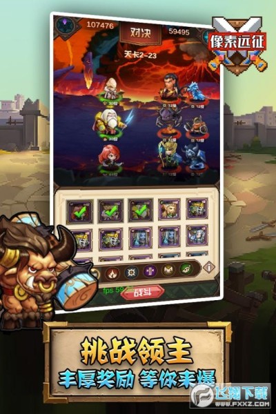 这是一款令人欲罢不能的角色扮演游戏!欢迎来到像素远征的世界,你可以在这里招募身怀绝技的个性英雄,组建强大的远征小队!