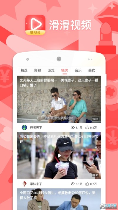 滑滑视频,一款看精彩视频,追热门资讯,汇聚好玩有趣内容的APP,越看赚越多,越看越有趣,海量内容刷到停不下来。