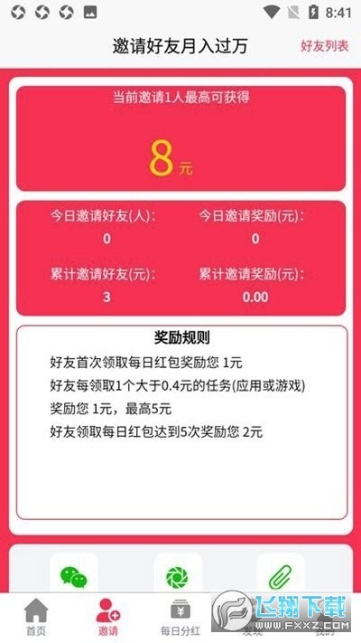 好友领取每日红包达到5次奖励您2元