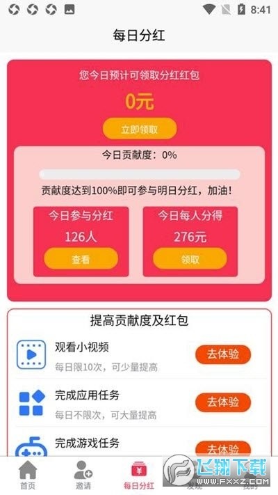 好友每领取1个大于0.4元的任务(应用或游戏)