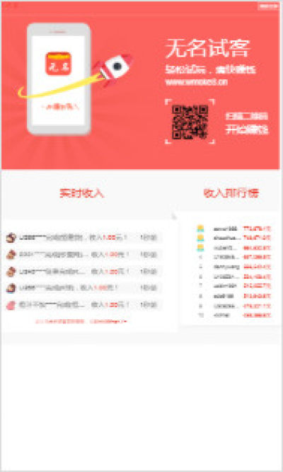 无名试客赚钱app是一款非常受欢迎的手机试玩赚钱软件,无名试客APP在这里做任务获得的积分进行兑换奖品,线上邀请好友、收徒等都能获得佣金奖励,有兴趣的小伙伴快来下载吧。