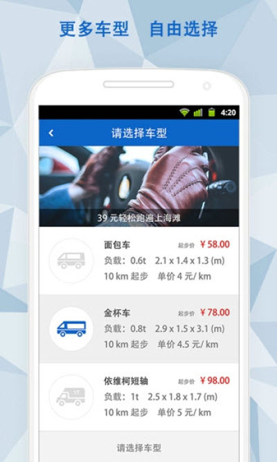 4.运价透明合理:根据所选车型与公里数智能计算运价,比市场价低30%,不怕中途被加价。