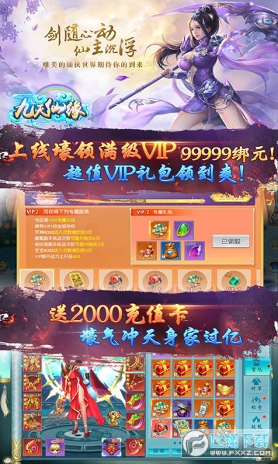 《九天仙缘送2000充值》是一款3D仙侠MMORPG手游,古典风韵的唯美东方大世界,百态万象的浪漫爱情,给你带来最为精致的视听华筵。多种职业随心切换,开放式自由交易,让你体验真正无束缚;场面宏大,招式畅爽的对抗战斗,任你纵想极致鲜活交战;新颖酷炫双人坐骑,美而不同精妙丽服,使你赚足超高回头率;还有海量社交活动,海量炫美时装,逗趣表情花式互撩!趣味休闲玩法,带你享受群嗨轰趴,与众多挚友一起在高颜值的暖心江湖里肆意畅游!