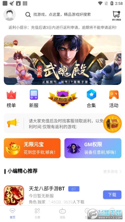 是一款十分好用的手游盒子,游戏齐全,海量游戏免费试玩,各种BT折扣游戏版本无需氪金就能当大佬,超低充值折扣等你来体验,喜欢的小伙伴赶紧来下载这款九谷游戏盒吧~