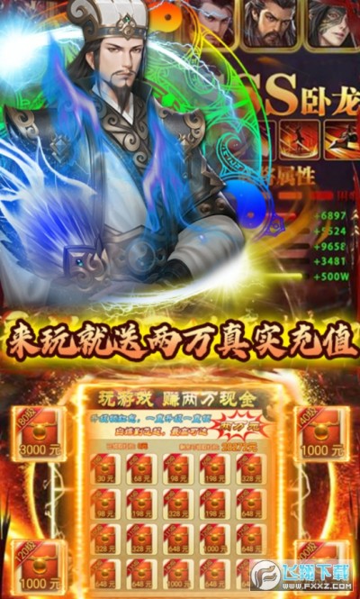 3、登录7日累计送1888元现金充值,助力一统三国,再送500抽,极品红将拿到手软!