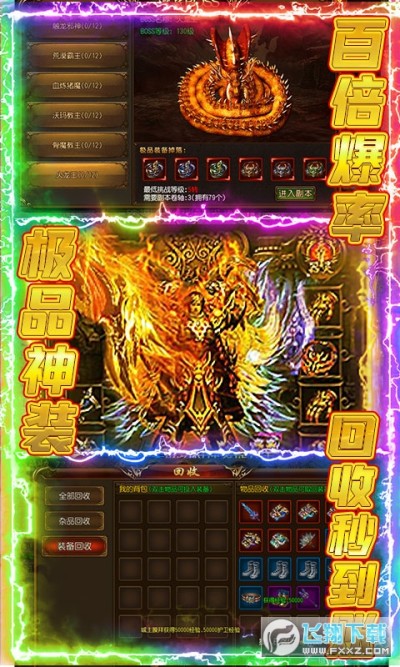 3、最强福利:充值比例1:10000,首充双倍、极品装备套装、海量资源任意送!