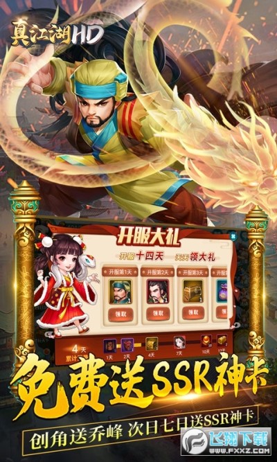 4、登录福利:首日送超强群攻侠客-乔帮主,七日送终极美女-西施,十四日再送绝版神兵