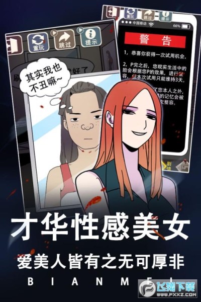 《整容游戏》同名漫画改编的一款可以“玩”的漫画游戏。 在这个看脸时代的社会,变美的消息无孔不入地渗透到人们的生活中,游戏中BGB时尚媒体公司的一个长相普通的职场女青年——易蓉,因为容貌问题,即使业绩非常优秀也无法得到领导的赏识,毕竟这是一个看脸时代。一个偶然的机会因为下载了一款:整容APP,没想到竟然真的可以......变美!!! 游戏中初尝了变美禁果的女主,从此踏上了一条不归路。