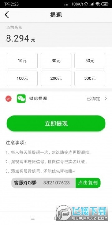 2、提现需绑定微信号,且微信号已实名认证。