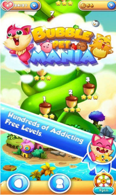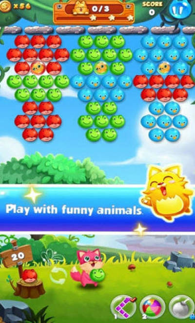 泡泡宠物狂热是一款完全免费的泡泡龙游戏,游戏风格清新可爱,玩家可以投掷可爱的气泡去消除其他同色的气泡,游戏关卡众多,赶快来加入吧。