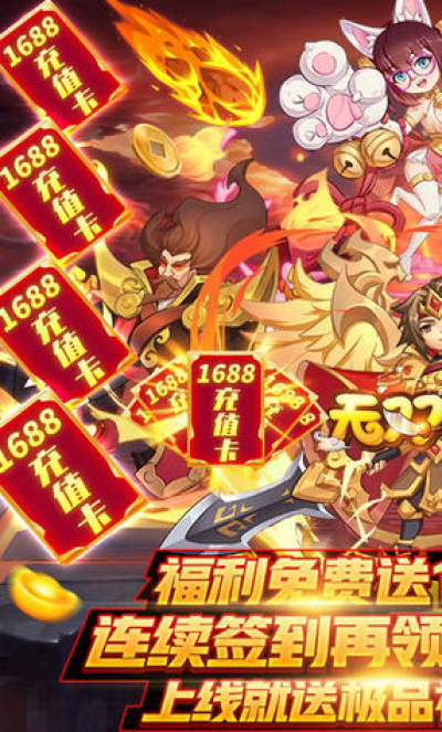 无双帝国送1688元真充变态版是一款Q版风格策略卡牌手游,上线送1688元充值红包,还融合了RPG和养成的玩法,玩家可以培养武将,升级装备天赋,参与跨服争霸,逐鹿中原等玩法,喜欢就赶紧来下载吧!
