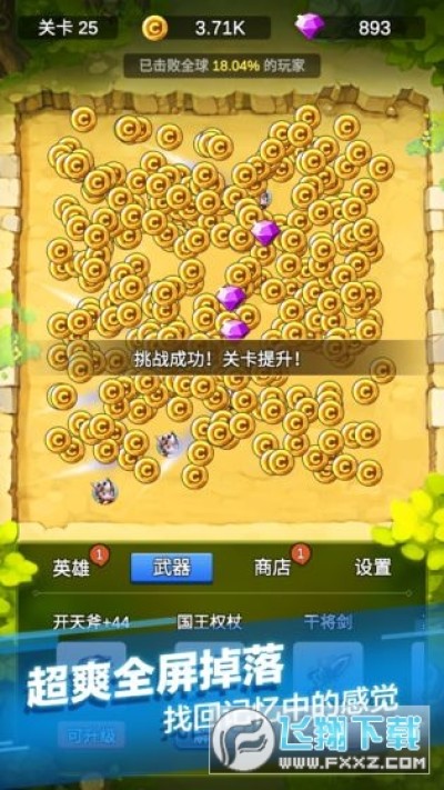 超级爽的全屏掉落,各种各样的道具能够帮助你轻松度过后续的难关