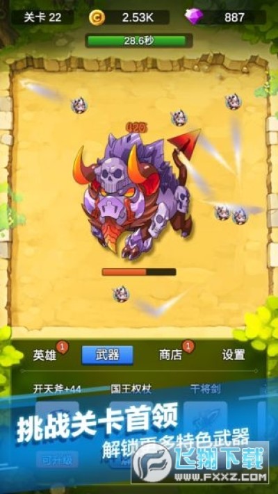 充满物理基础原理的无限反弹机制,轻松击败所欲怪兽,从而通过挑战关卡