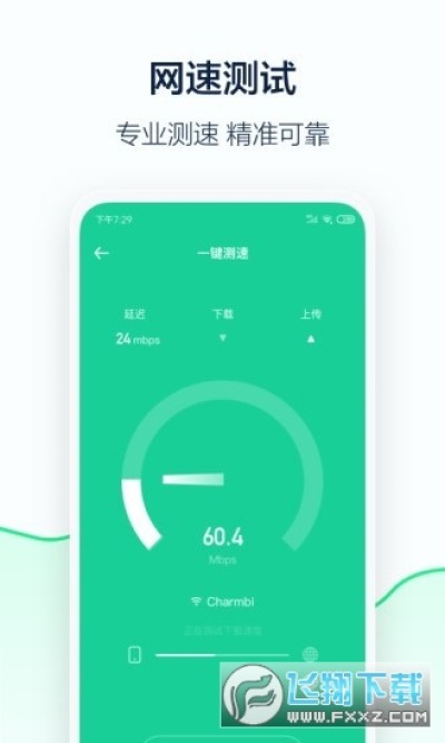 2、轻轻一点,快速掌握当前Wi-Fi、4G、5G网速,查看下载速度、上传速度、网络延时等网络数据信息