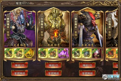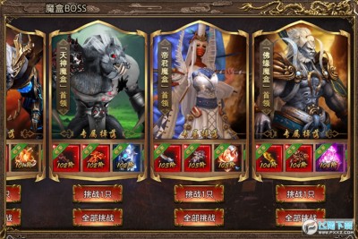 通过消耗指定品阶魔盒可以挑战对应魔盒首领,品级越高可以挑战的首领也越高,当然奖励也就越丰富。