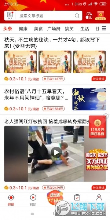 1、国庆微报是专业的转发文章赚钱平台,为你提供优质的阅读内容和最新的时事热点新闻等等