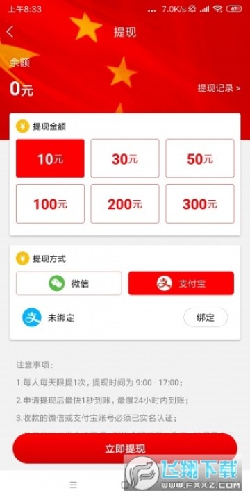 1.每人每天限提1次,提现时间为9:00-17:00;