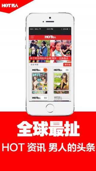 首个《男人装》系列应用专业时尚杂志类应用极致体验APP。HOT男人,中国男人最爱的APP,你懂的。一周三本免费热辣杂志,专为男人服务。全新推出女神交友平台,喜欢就约她。内涵段子,24小时不断更新。养眼美女,人气话题,顶级冷笑话,全为你呈现。“HOT男人”在手,一次全部拥有!